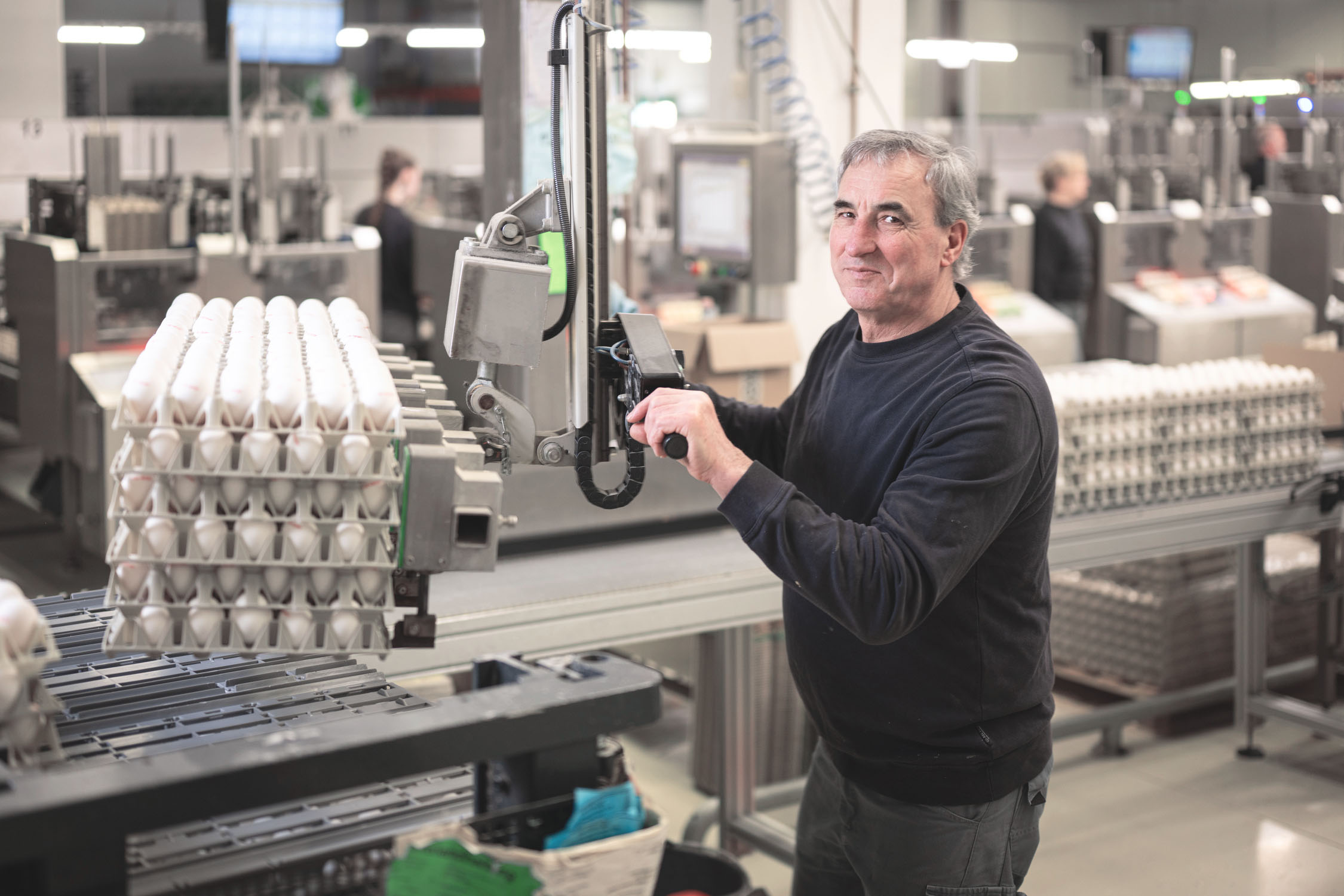 Mehr als 40 Beschäftigte sortieren täglich zwischen 350.000 und 450.000 Eier in einer umfangreichen Produktpalette. Ihr tägliches Bemühen um eine hohe Qualität ist ein wesentlicher Bestandteil der Unternehmenskultur.