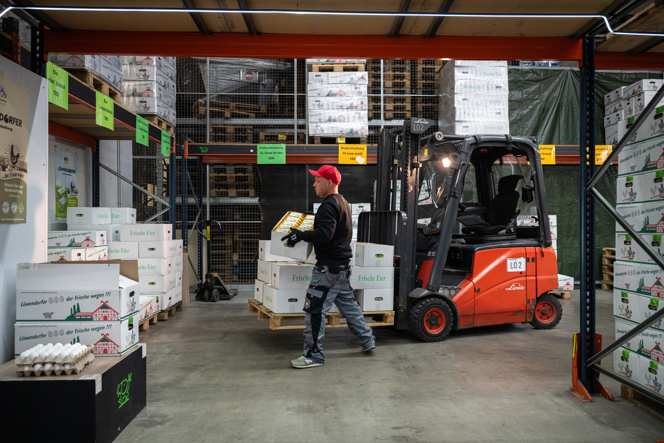 Dort werden von 3 Mitarbeitern unseres Unternehmens jeden Wochentag von 2:30 Uhr morgens bis 9:00 Uhr am Vormittag unsere Produkte an Markt- und Einzelhändler, Gastronomie und Wiederverkäufer verkauft. Mittlerweile werden dort mehr als 1.000.000 Eier im Monat umgesetzt.